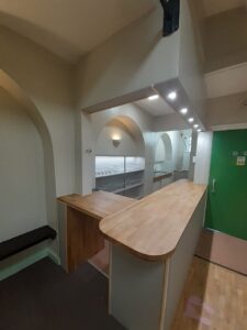 Installed during August, the new bar in Axbridge town hall enhances the hall’s offering to hirers. With an oak counter top, new lighting and increased storage, it brings a much needed update to the previous 1960’s bar.